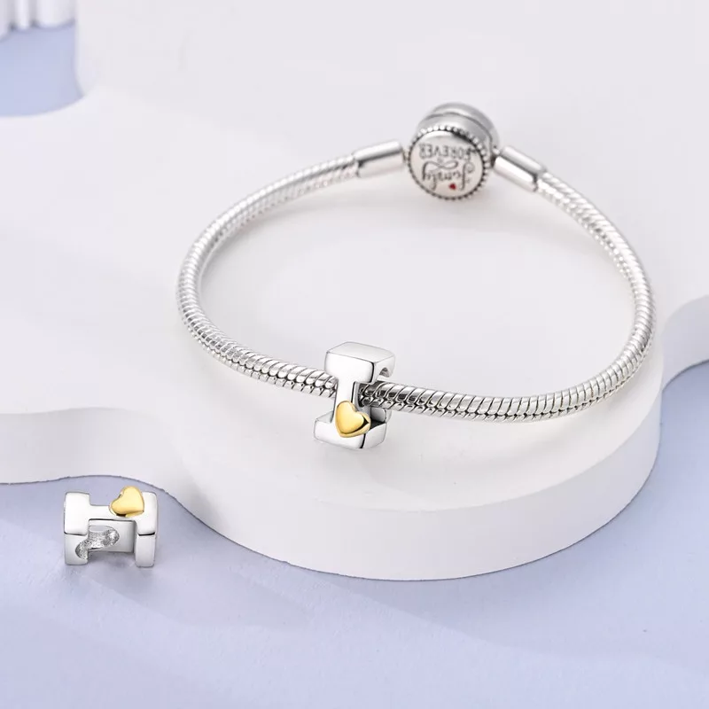 A charm különlegessége a letisztult, fényes ezüst felületen megcsillanó, apró arany színű szív motívum. Ez a finom kontraszt melegséget és romantikus bájt kölcsönöz az ékszernek, így bármilyen összeállítást különlegessé tesz. Legyen szó egy fontos alkalomról vagy a mindennapok ragyogásáról, ez a darab a minimalista elegancia jegyében született.