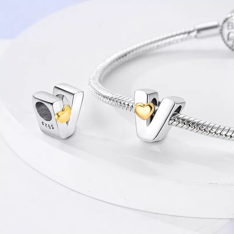 A charm különlegessége a letisztult, fényes ezüst felületen megcsillanó, apró arany színű szív motívum. Ez a finom kontraszt melegséget és romantikus bájt kölcsönöz az ékszernek, így bármilyen összeállítást különlegessé tesz. Legyen szó egy fontos alkalomról vagy a mindennapok ragyogásáról, ez a darab a minimalista elegancia jegyében született.