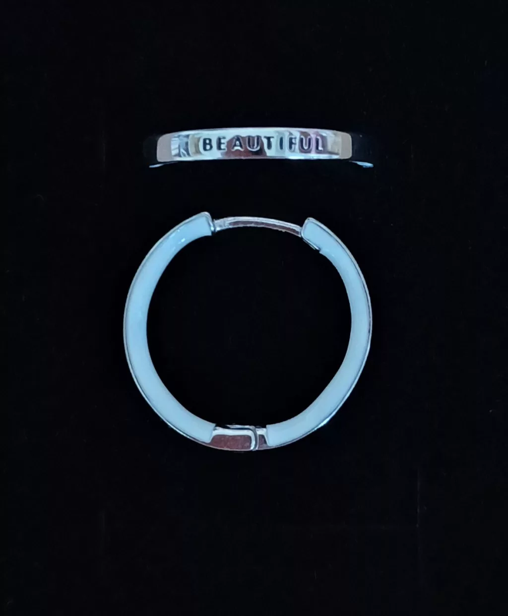 Mutasd meg a világnak ezzel a bájos, karika fülbevalóval! A peremén rejtett "BEAUTIFUL" üzenet csak neked szól. Minimalista dizájn, maximális önbizalom.