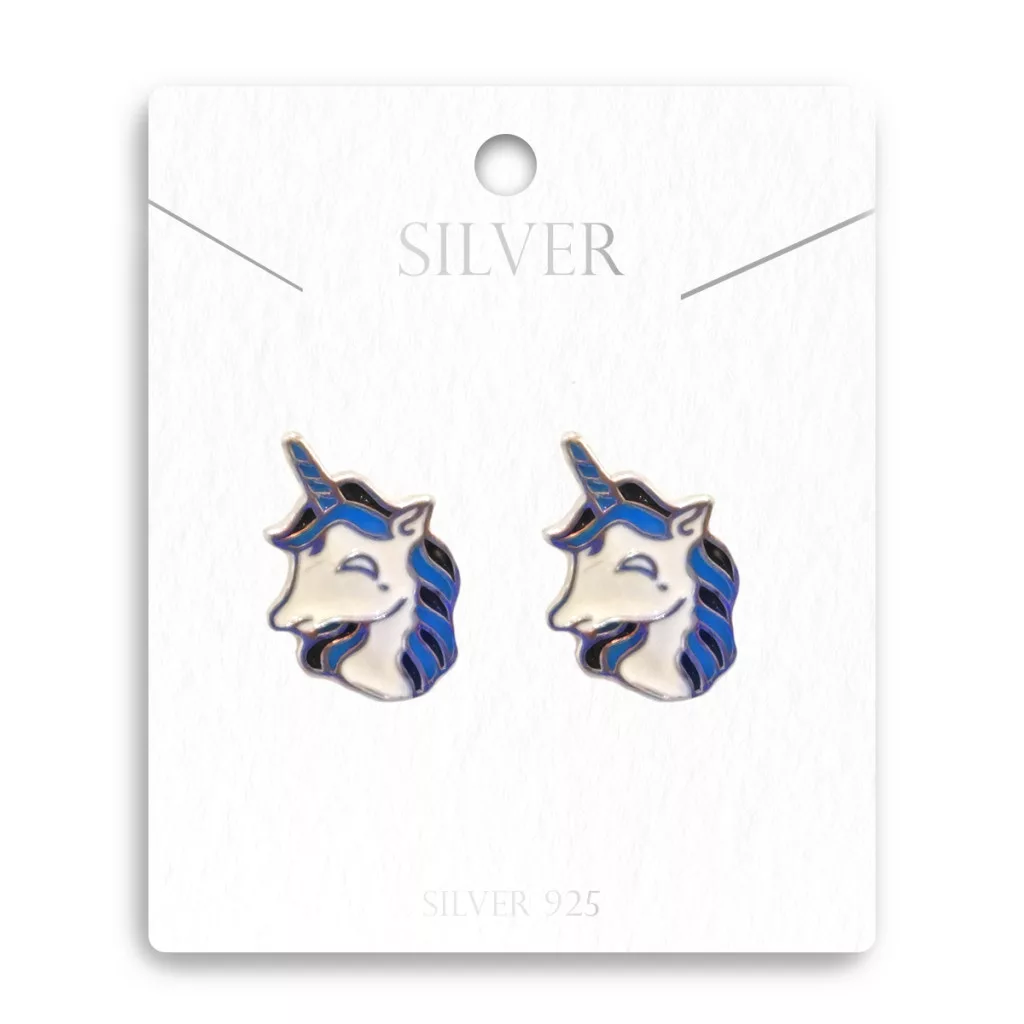 Égszínkék Sörényű Álom Egyszarvú Ezüst Fülbevaló Szilikon Véggel