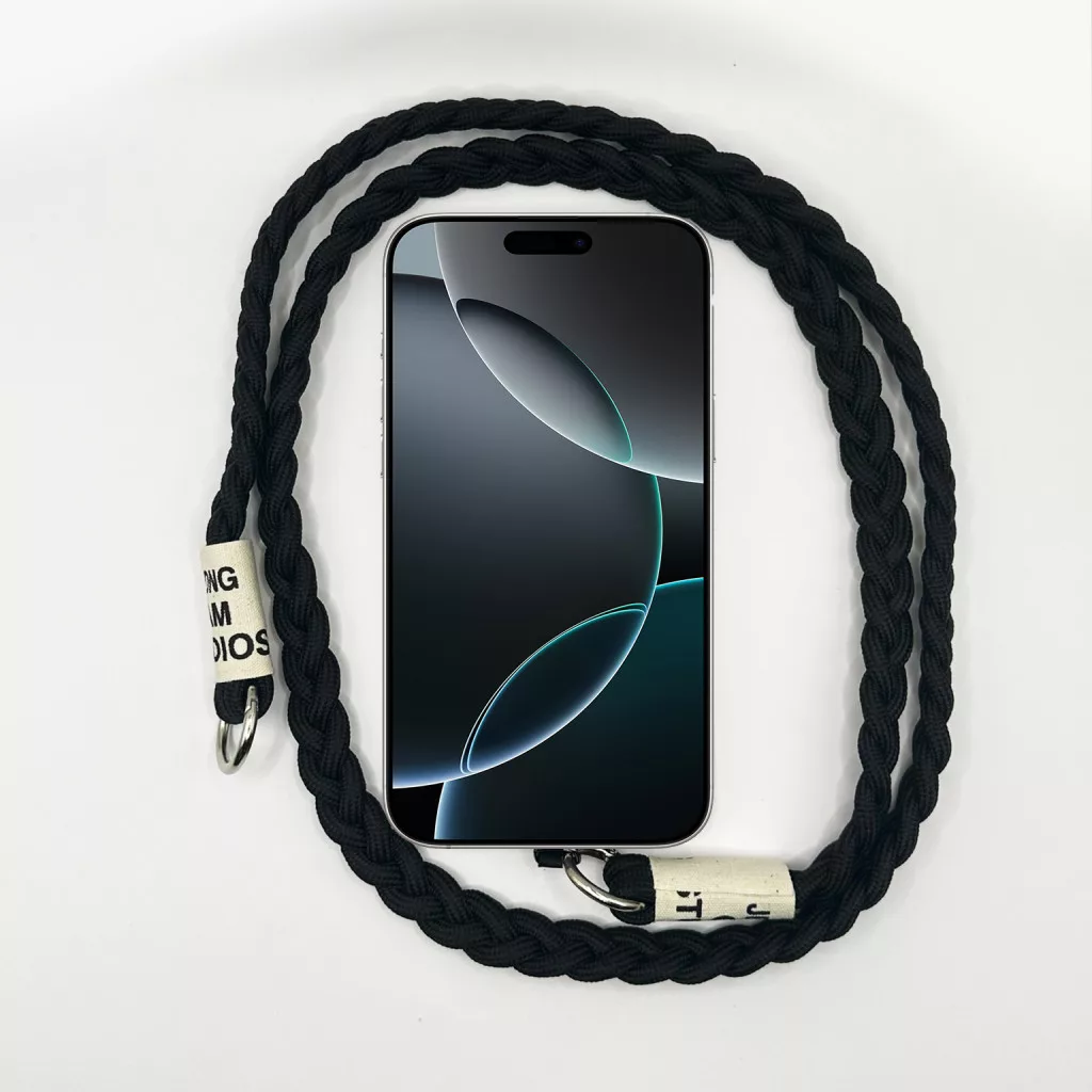 Egyszínű Fekete - Szövegcímkés Fonott Hosszú Telefonpánt