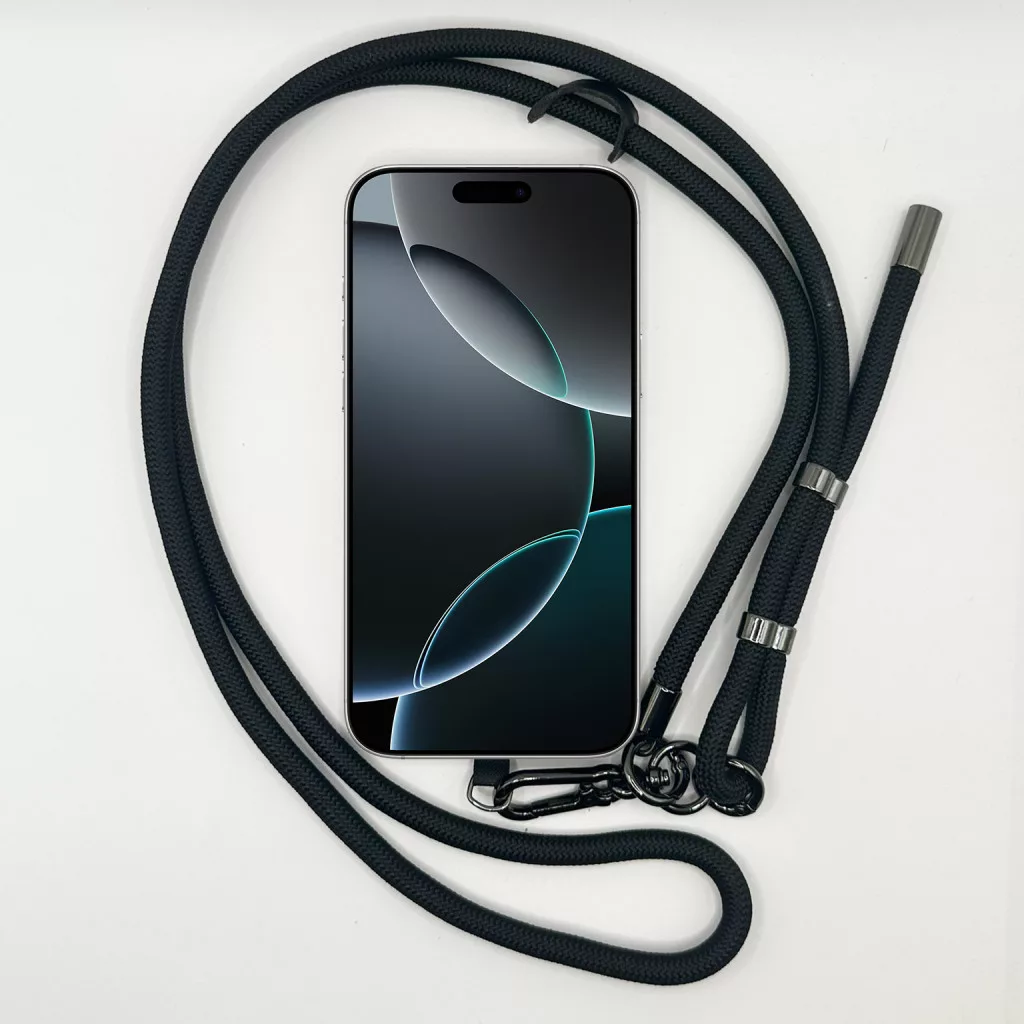 Egyszínű Fekete - Univerzális Hosszú Telefonpánt Fekete Karabinerrel