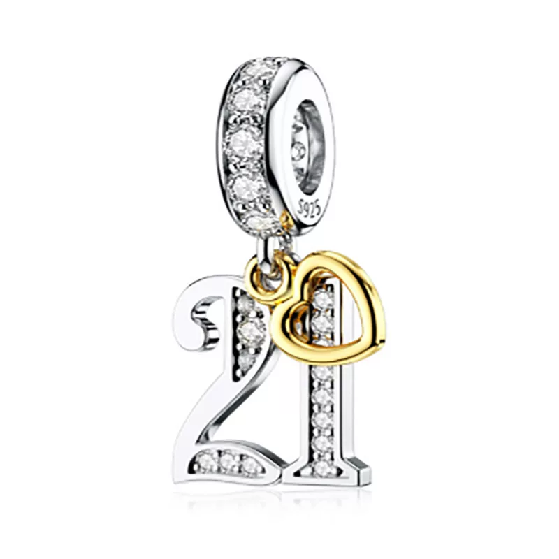 Ünnepeld az élet fontos mérföldköveit ezzel az elegáns ezüst charmmal, amely egy csillogó évszámot és egy finom rózsaarany szívet kombinál! Az évszámot apró, ragyogó kövek díszítik, eleganciát kölcsönözve neki. Az apró, rose gold szívmedál romantikus kiegészítője a design-nak. A charm akasztója szintén csillogó kövekkel van kirakva, így ez a medál igazán ragyogóvá teszi a karkötődet. Tökéletes ajándék születésnapra, évfordulóra, vagy bármely más alkalomra, ahol egy fontos dátumot szeretnél megünnepelni, elegáns és időtálló formában. Ez a medál kompatibilis Pandora Moments karkötőkkel.