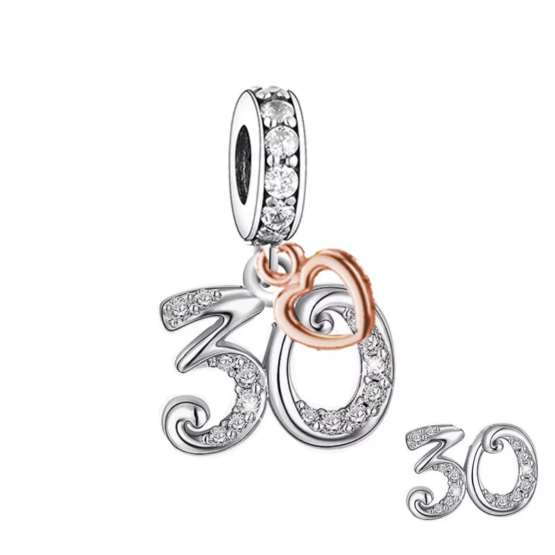 Ezüst Évszám Függ Charm Szívvel 30-as számmal