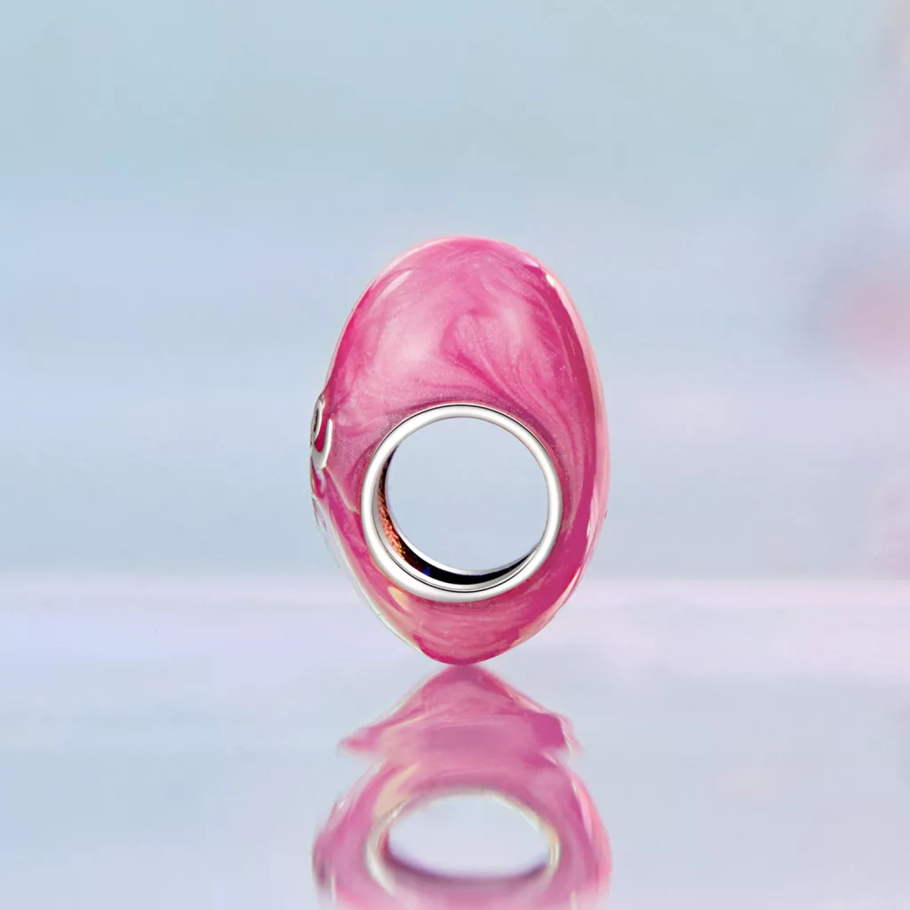 Hagyd, hogy a szeretet üzenete beszéljen helyetted ezzel a ragyogó, szív alakú ezüst charm-mal! A duci szív forma felülete élénk, fénylő rózsaszín zománccal van borítva, ami azonnal romantikus, feltűnő megjelenést kölcsönöz az ékszernek.
