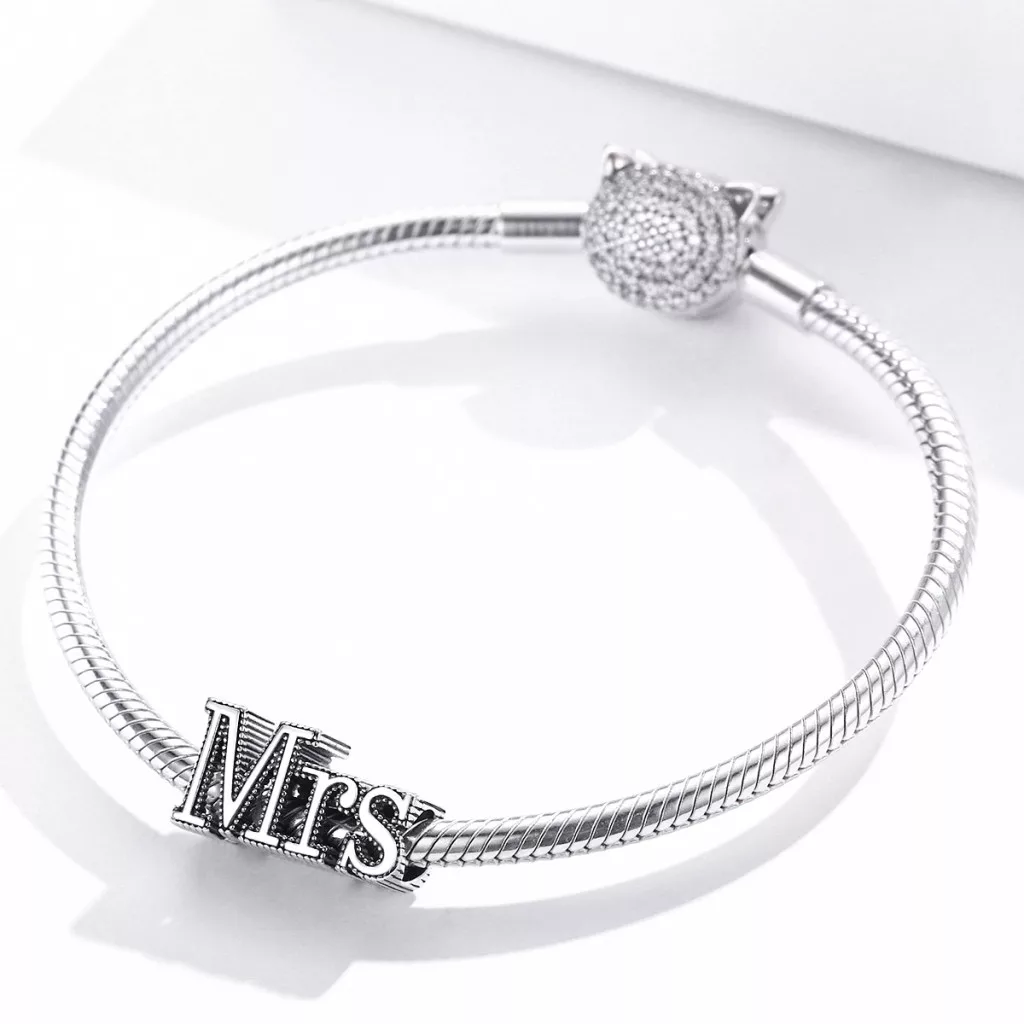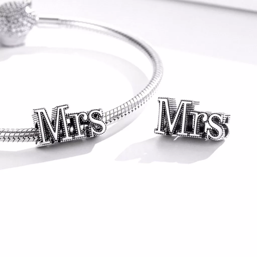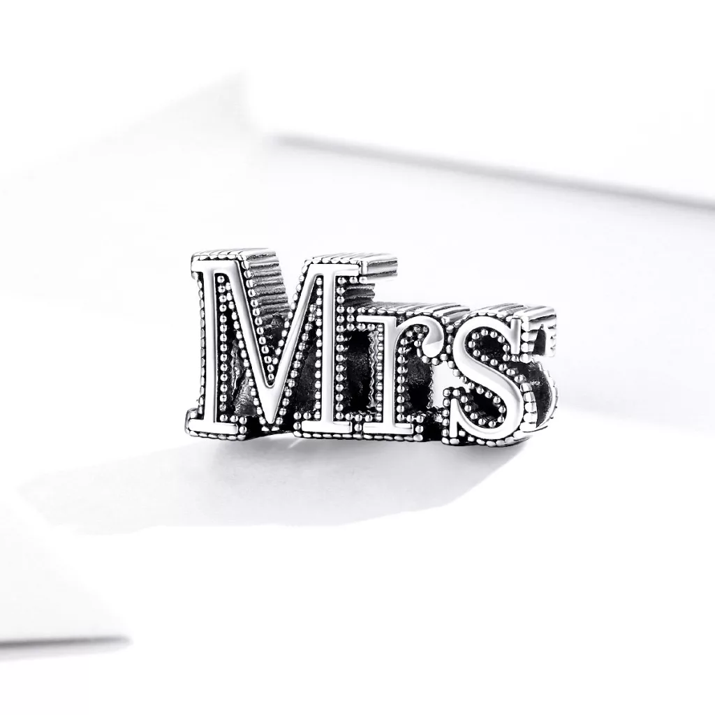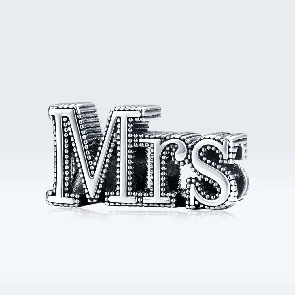 Ünnepeld a házasság örömteli pillanatait ezzel az elegáns ezüst "Mrs." charmmal! A charm részletgazdag, domború betűkkel formázza a "Mrs." szót, mely a feleség szerepének büszke szimbóluma. Az oxidált felületek mélységet és karaktert adnak a charmnak, kiemelve a betűk textúráját.