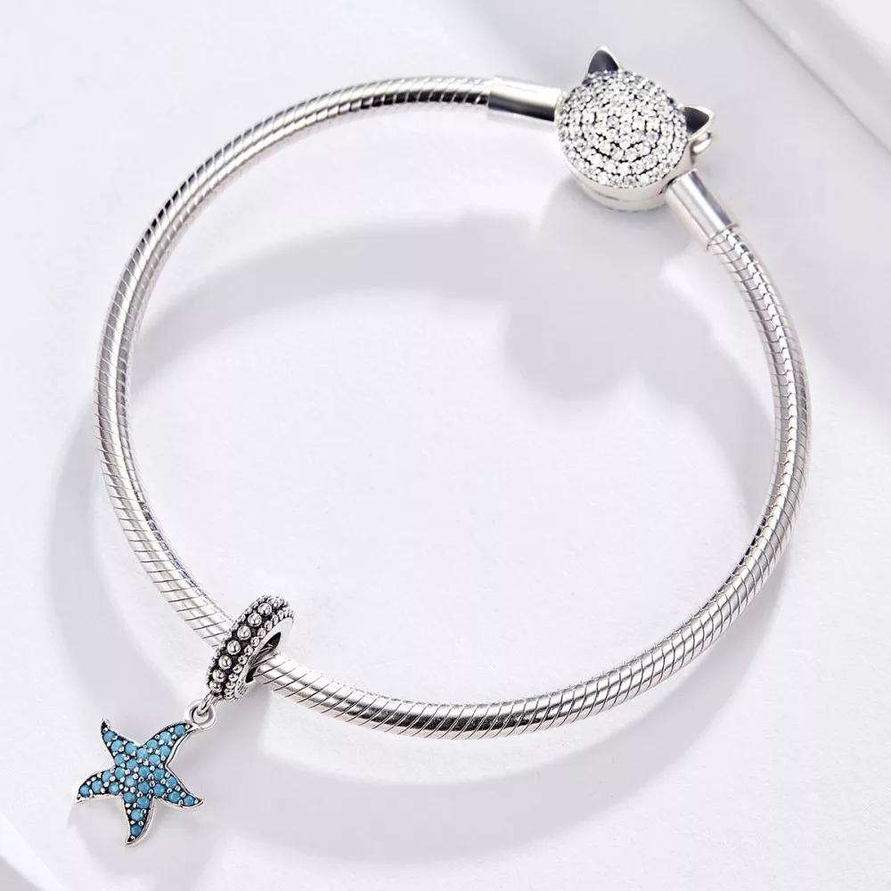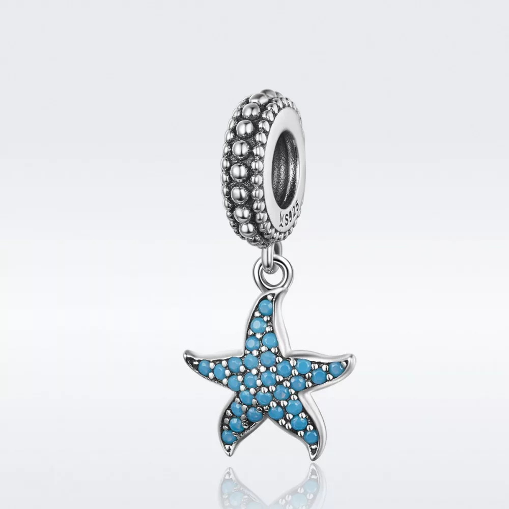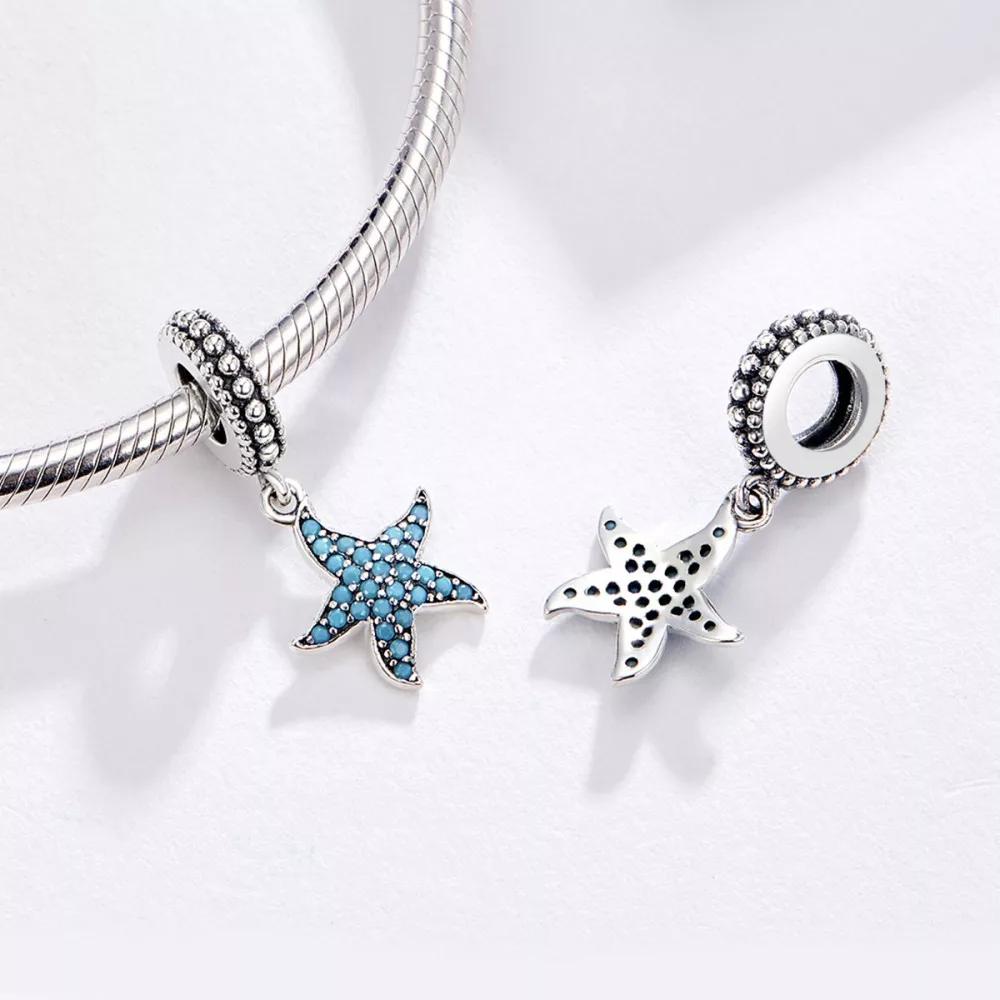 Ezüst kék tengeri csillag függő charm