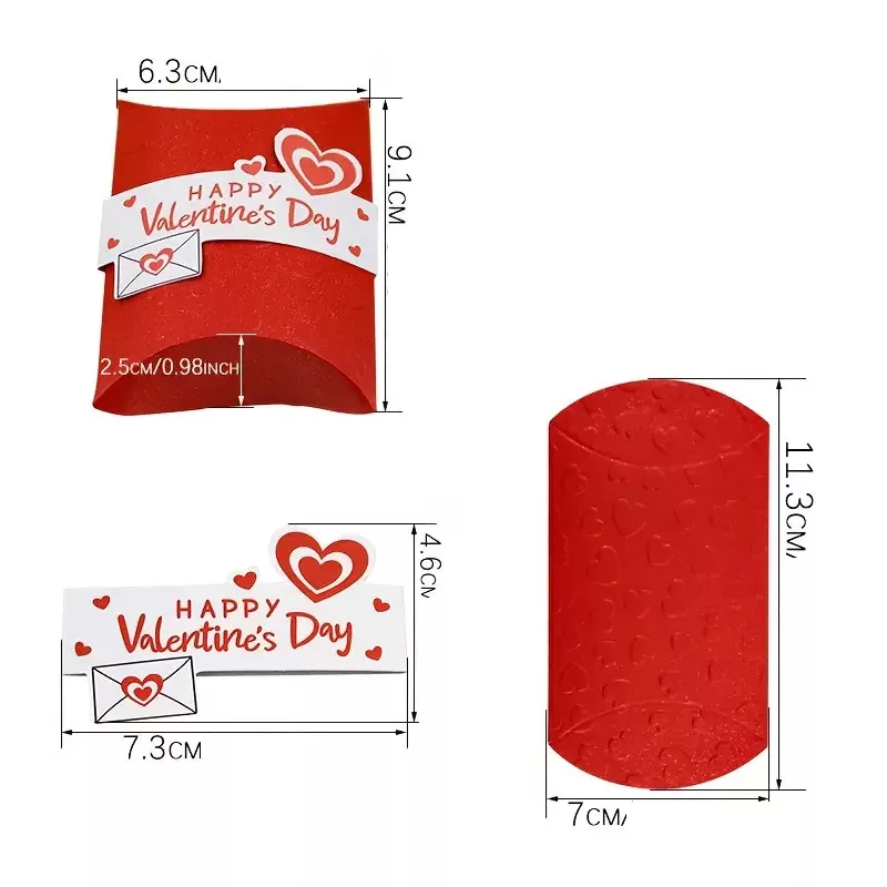 1. Elegáns Piros Kivitel: Az intenzív piros színű papír párnadoboz luxus érzetet kölcsönöz az ajándéknak. A kifinomult és vonzó megjelenés egyértelműen kiemeli az ajándék értékét és exkluzivitását.