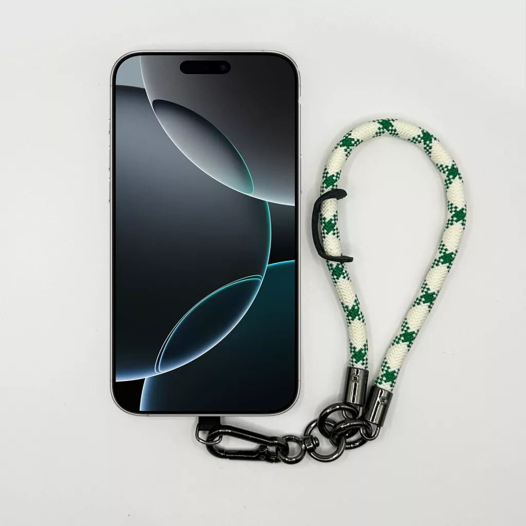 Fehér-Zöld Rombuszmintás - Klasszikus Telefon Csuklópánt Karabinerrel