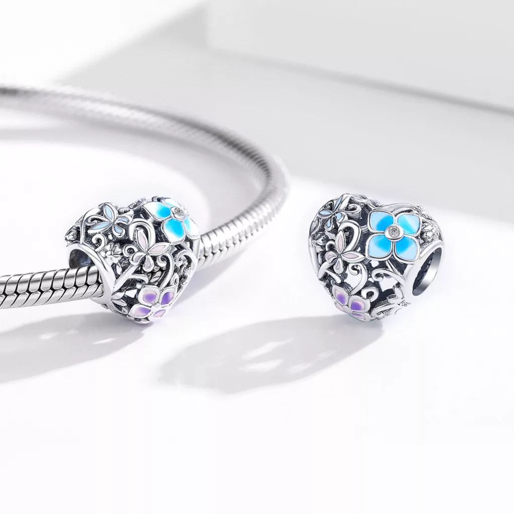 Tárj ki egy apró, titkos kertet ezzel a szív alakú, áttört mintás ezüst charmmal. A "Titkos Kert Szíve" egy igazi mestermű, ahol a finoman kidolgozott, légies indák egy rejtett világot ölelnek körbe, tele élettel és színekkel.