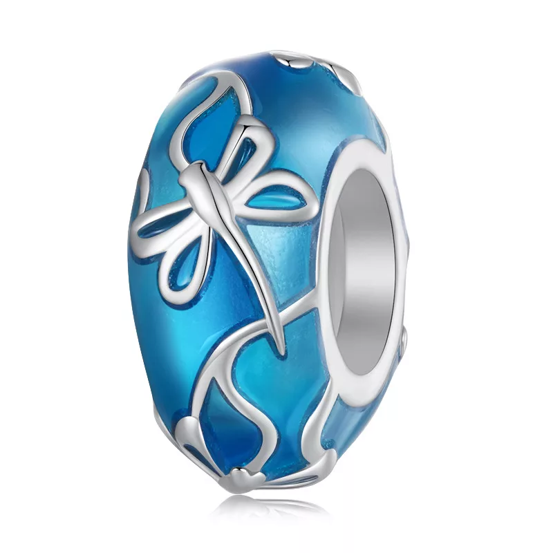 Ez az ékszer tökéletes választás minden olyan személy számára, aki szereti a természetet és a misztikus motívumokat. A kék alapon szitakötő mintás ezüst charm kiegészíti mindennapi öltözékedet vagy különleges alkalmakra is tökéletes választás lehet.