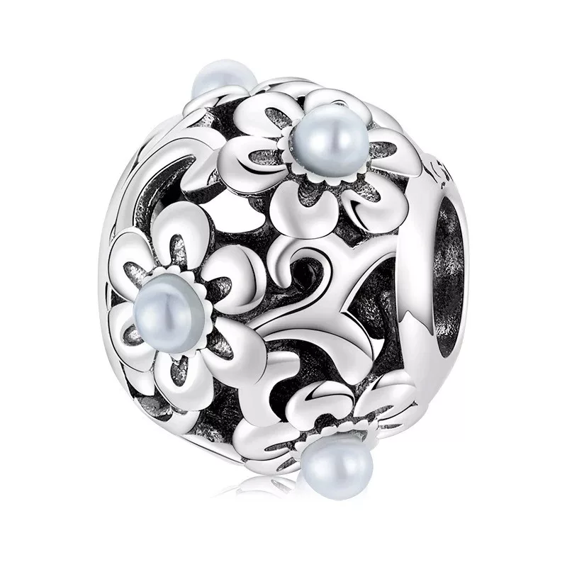 Klasszikus Antik Virágos gömb Ezüst Charm Gyöngyökkel