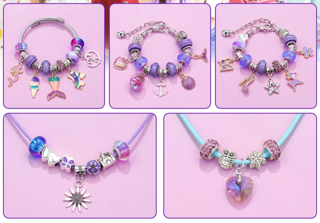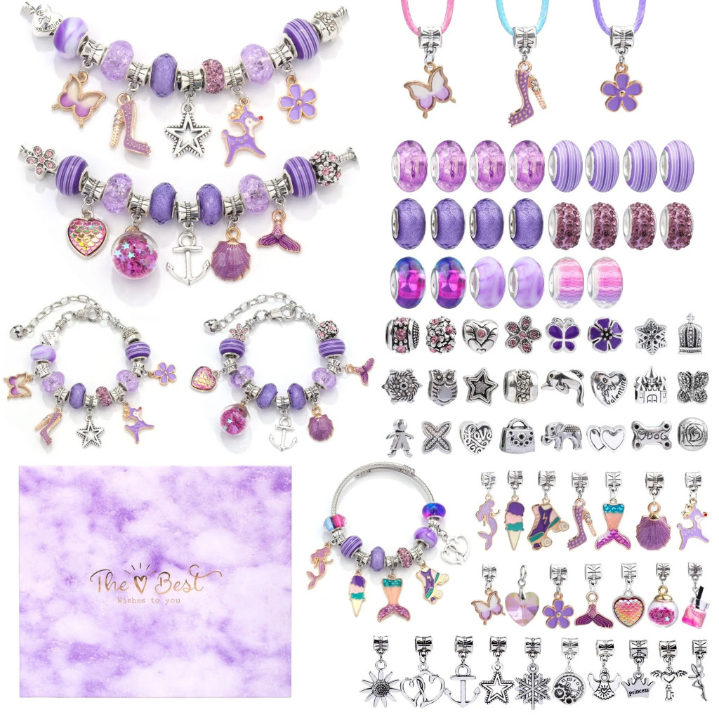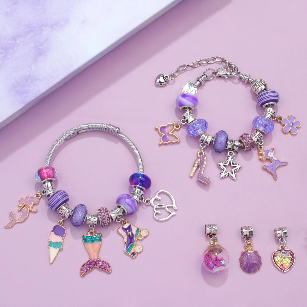 Ez a lenyűgöző, lila színvilágra épülő készlet mindent tartalmaz, amire egy egyedi ékszerkollekció megalkotásához szükség lehet. A szett különlegessége a variálhatóság: a medálok és charmok szabadon cserélgethetők, így minden naphoz, hangulathoz vagy ruhához új karkötő vagy nyaklánc fűzhető.
