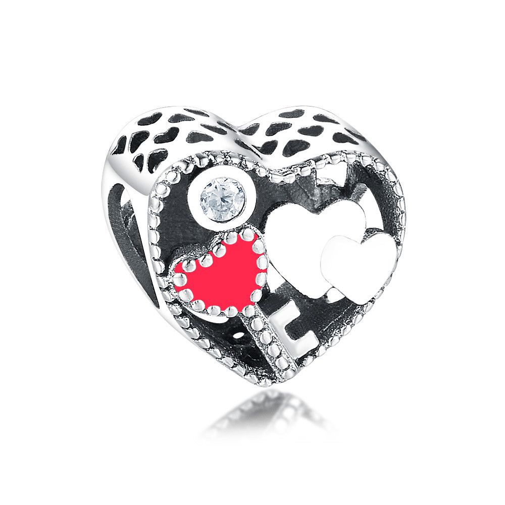 Piros szíves szív alakú ezüst charm