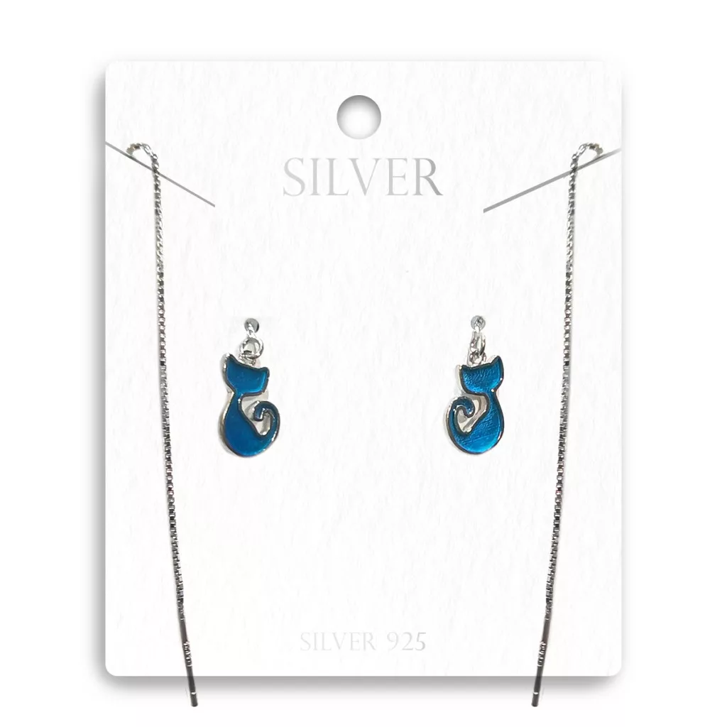 Kék Doromboló Cicás Áthúzós Ezüst Fülbevaló