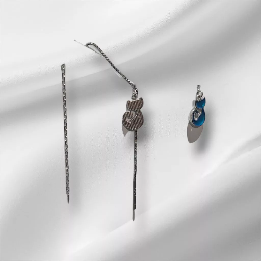 Mutasd meg cicás oldaladat a "Kék Doromboló Cica" áthúzós ezüst fülbevalóval! Ez a kedves és igazán stílusos ékszer egy elegáns cica sziluettet formáz, melynek egy része bájos kék színben pompázik, azonnal megragadva a tekintetet. A fülbevaló különlegessége az áthúzós kialakítás: nincs hagyományos hátulja, az egész vékony ezüst láncot át kell húzni a fülön, és tetszés szerint olyan hosszúra állítható, ahogy éppen kényelmes és ahogy a cicás stílusodhoz a legjobban illik.