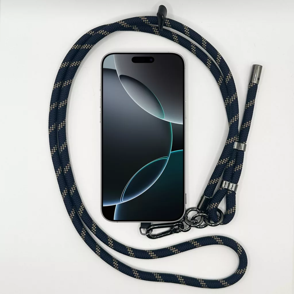 Sötétkék-Homokszín Mintás - Univerzális Hosszú Telefonpánt Karabinerrel