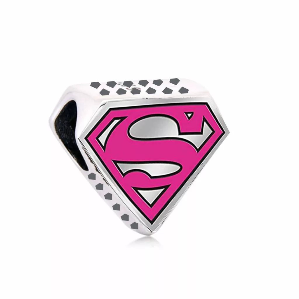 Fedezd fel a Super Woman pink mintával ezüst charmot, amely egy igazán lendületes és bájos kiegészítő minden ékszergyűjtő számára! Ez a charm a női erőt és önbizalmat ünnepli, miközben egyedi pink mintáival és elegáns ezüst alapanyagával különleges megjelenést kölcsönöz.