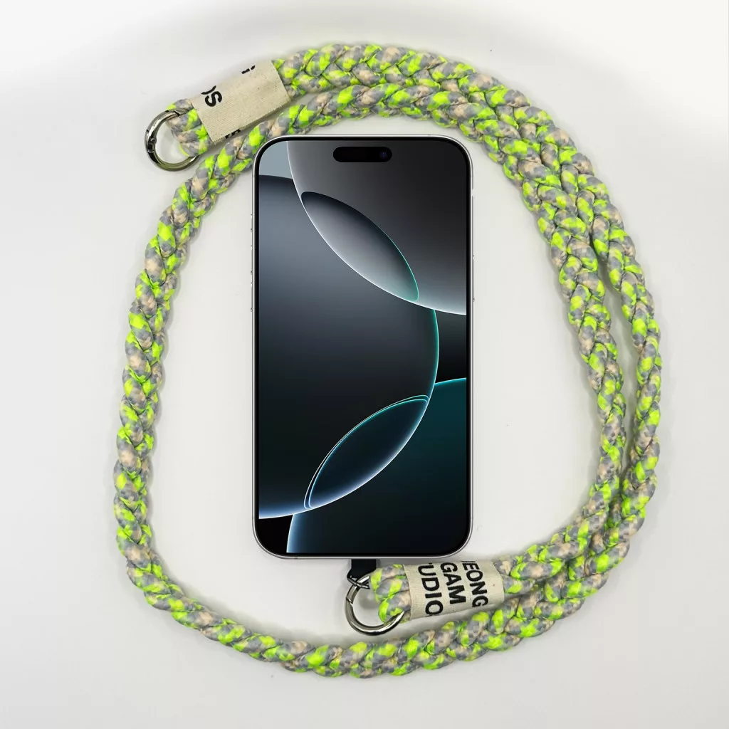 Szürke-Neon - Szövegcímkés Fonott Hosszú Telefonpánt Karabinerrel
